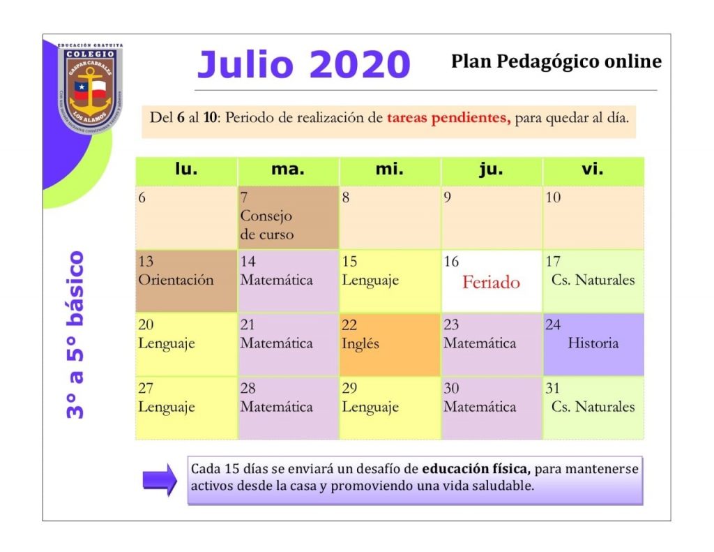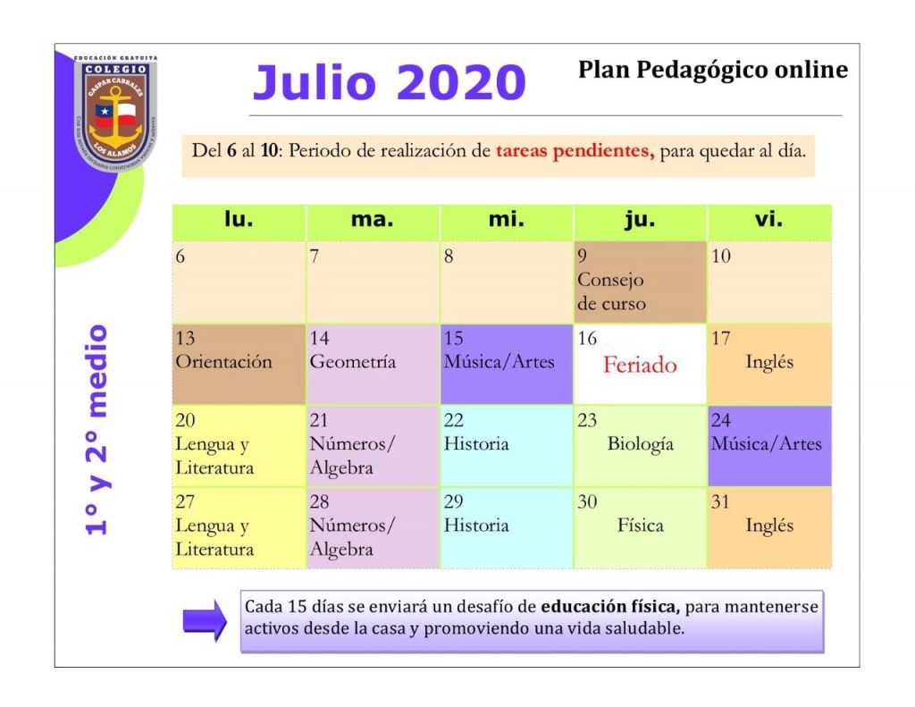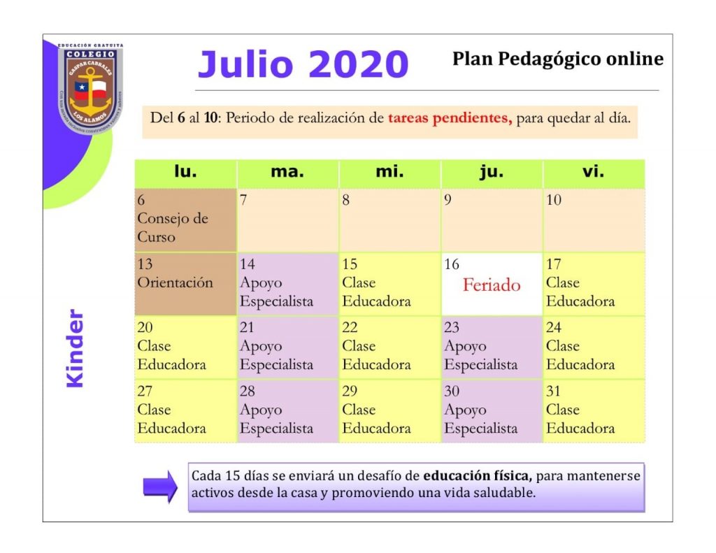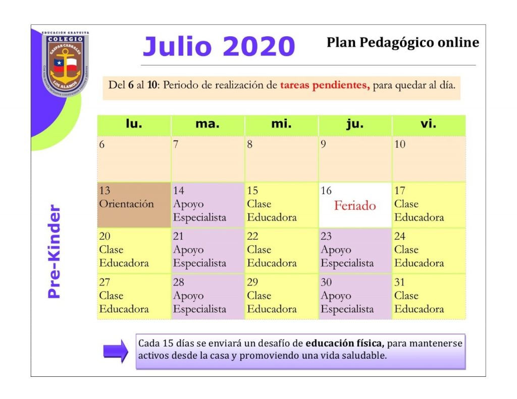 Horarios mes de Julio 2020