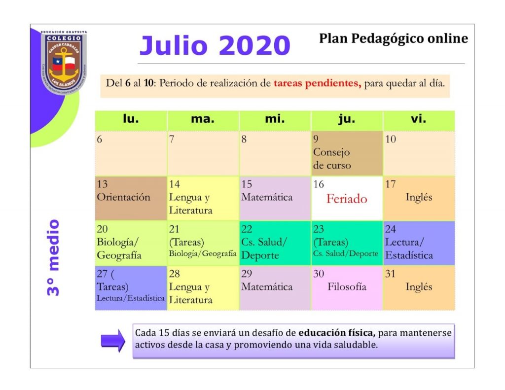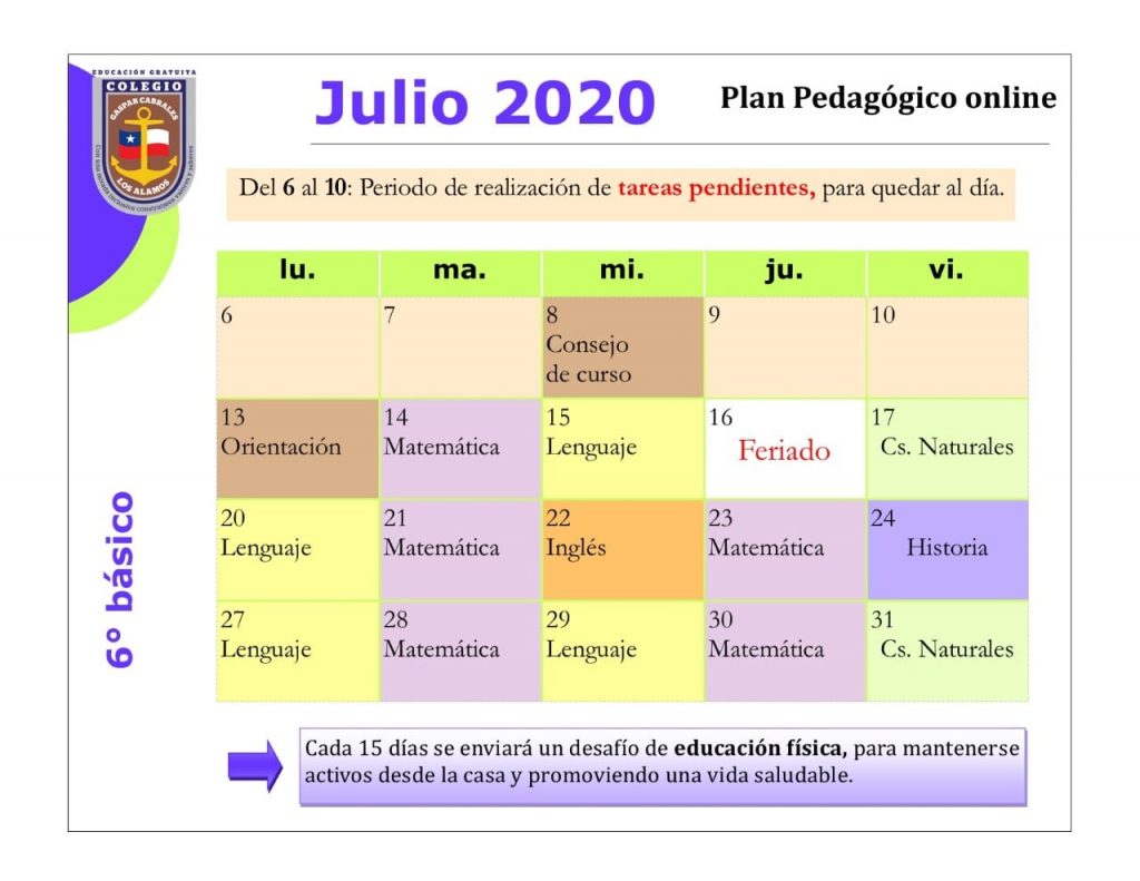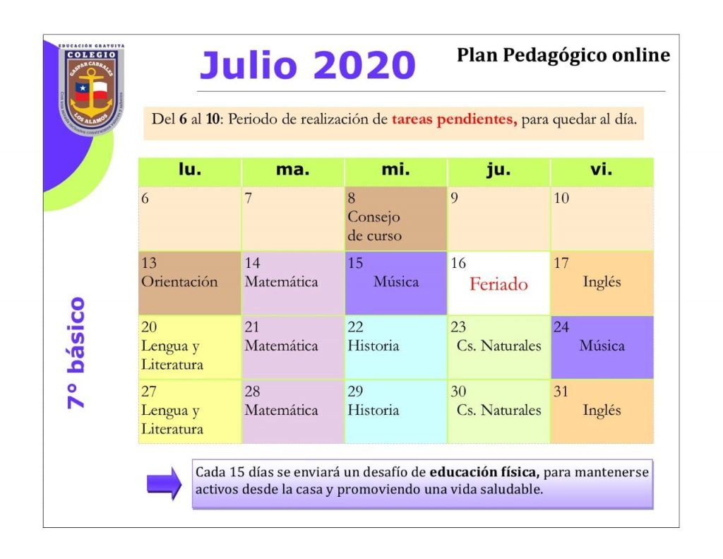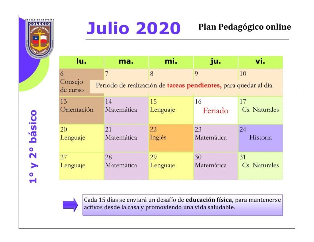 Horarios mes de Julio 2020
